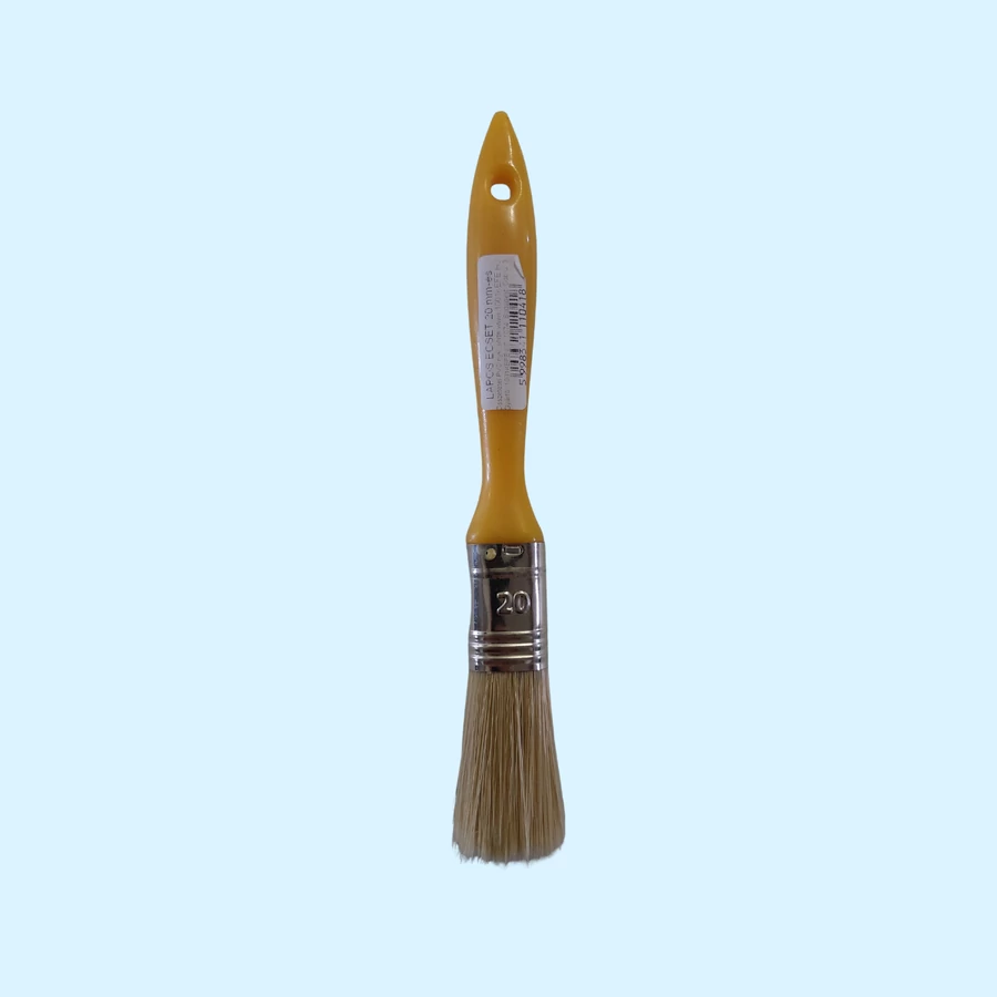 A sárga nyelű ecset 20 mm-es változata ideális aprólékos munkákhoz, ahol fontos a pontosság és a tiszta festés.